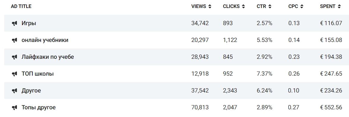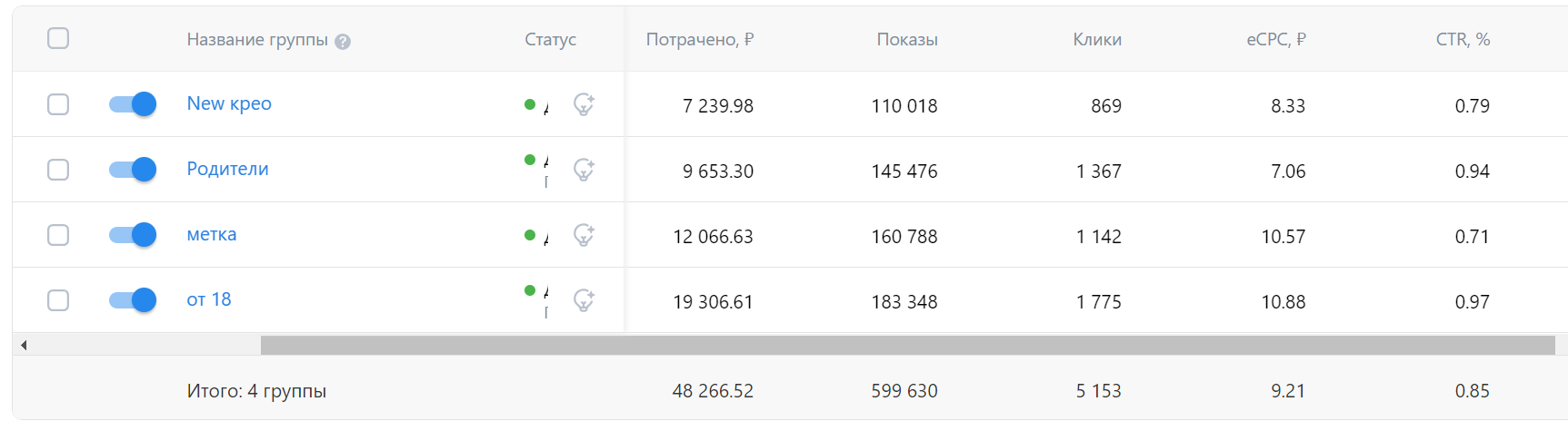 Средняя цена клика (CPC):9 ₽. Рекордно низкая стоимость.