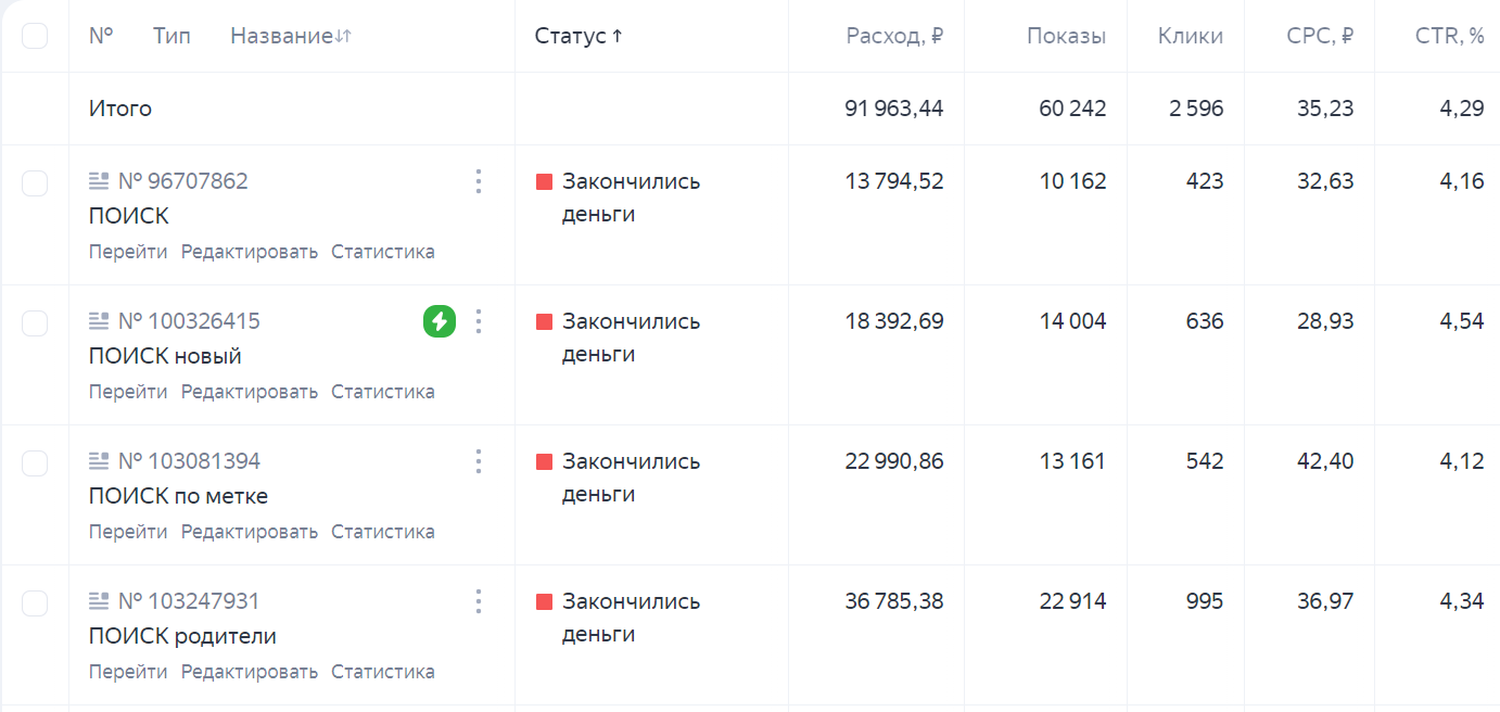 Кампания показала отличную конверсию — каждый четвёртый клик превращался в заявку. Это говорит о высокой релевантности предложения и точном попадании в «горячую» аудиторию. Стабильный и окупаемый канал.
