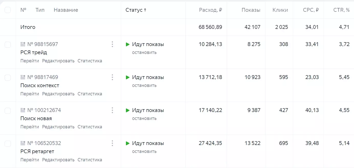 Настроил рекламу на поиске по целевым запросам, связанным с обучением трейдингу и инвестициям.