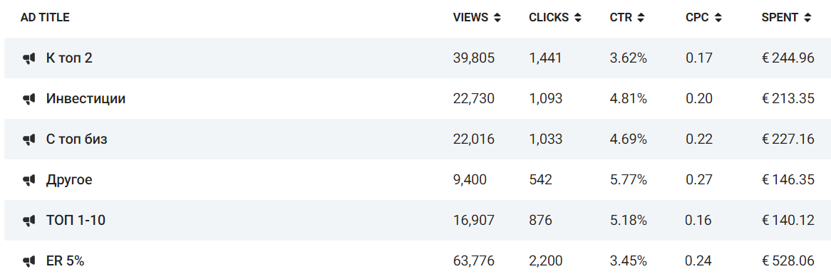 Настроил официальную рекламу на каналы конкурентов и новостные сводки по финансам/крипте.